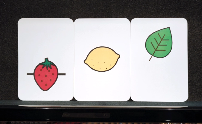 いちご→「ド」、レモン→「レ」、葉っぱ→「ミ」